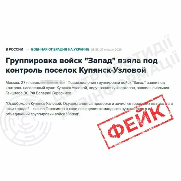 Заяви російського командування про нібито захоплення Куп’янська-Вузлового на Харківщині є неправдивою. Населений пункт не перебуває під контролем російських військ і не знаходиться безпосередньо на лінії бойового зіткнення.